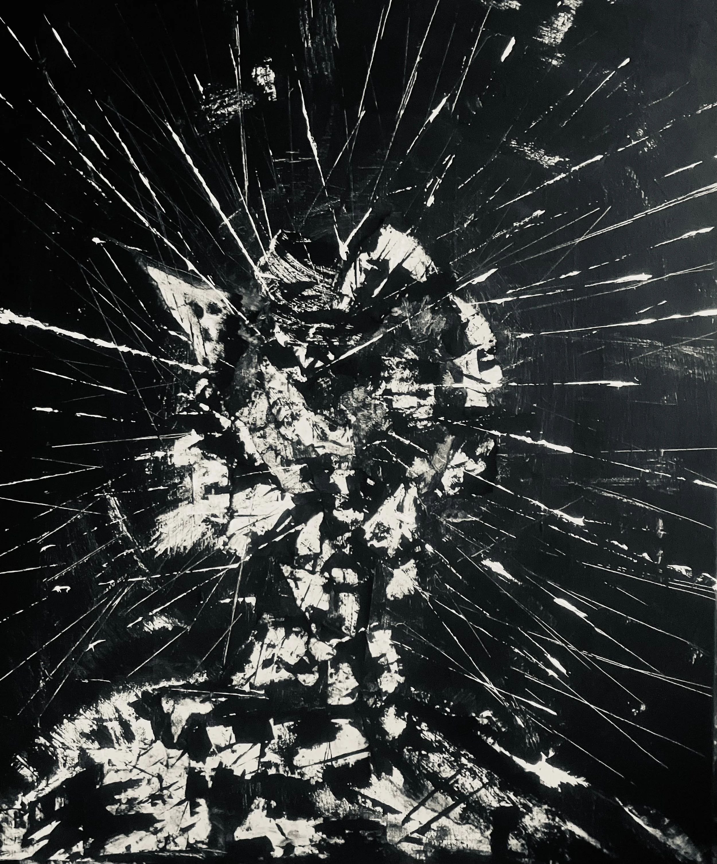 Collapse 2, 2024. 35" x 23", acrylic and rice paper on canvas.